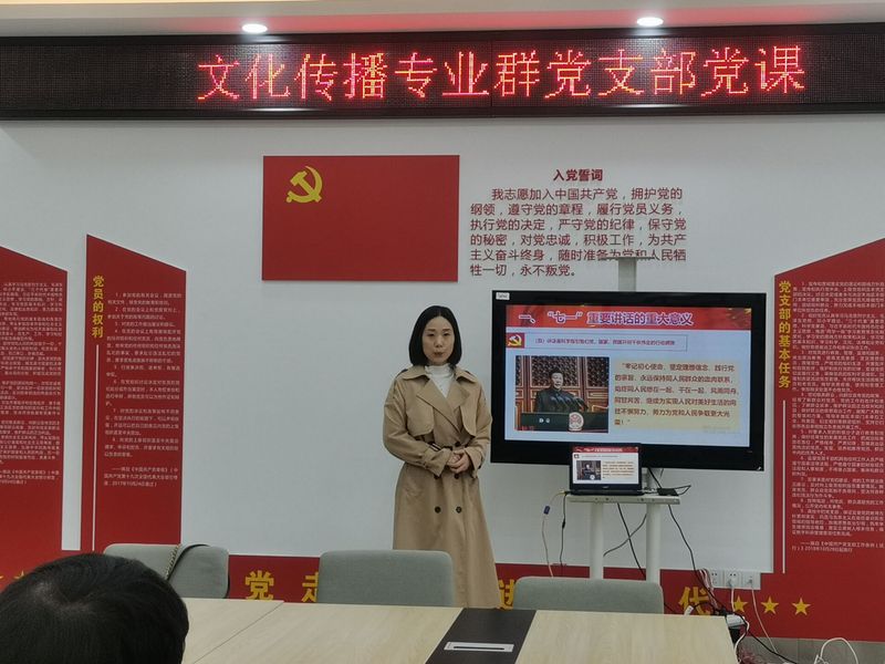 “中国共产党立志于中华民族千秋伟业,百年恰是风华正茂!”为深入学习贯彻习近平总书记在庆祝中国共产党成立100周年大会上的重要讲话精神,学习贯彻党在百年奋斗中积累的宝贵经验和实践启示,弘扬伟大建党精神,勇当中华民族伟大复兴先锋力量。文化传播专业群党支部书记杨洁于2021年10月19日下午在敏学楼A408为支部党员们作了主题为“新时代中国共产党的政治宣言——学习贯彻习近平总书记‘七一’重要讲话精神”的宣讲报告。