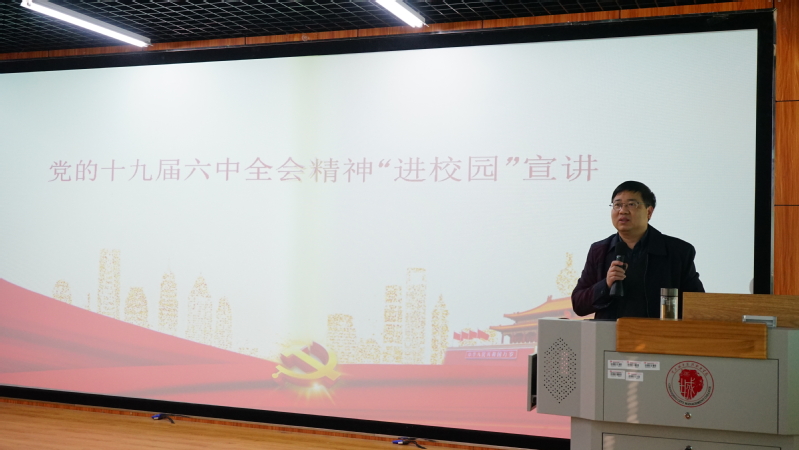 为深入贯彻落实党的十九届六中全会精神,不断推进习近平新时代中国特色社会主义思想进课堂、进头脑,12月21日,民政与社会治理学院在致用楼B205开展党的十九届六中全会精神“进校园”知识宣讲会,学校党委副书记、校长邓明国主讲,带领学院师生代表一同学习。