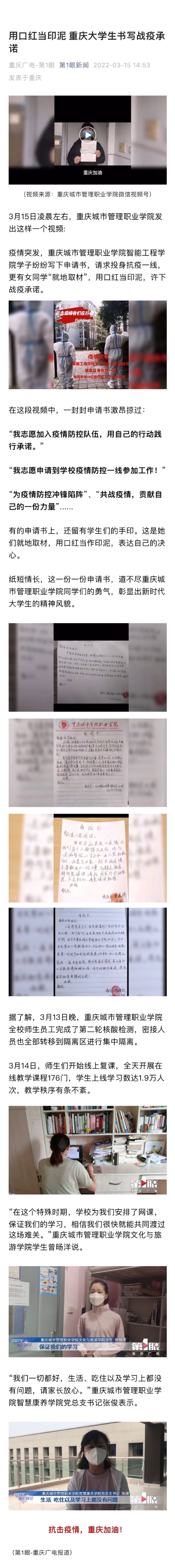 [重庆广电]用口红当印泥 重庆大学生书写战疫承诺