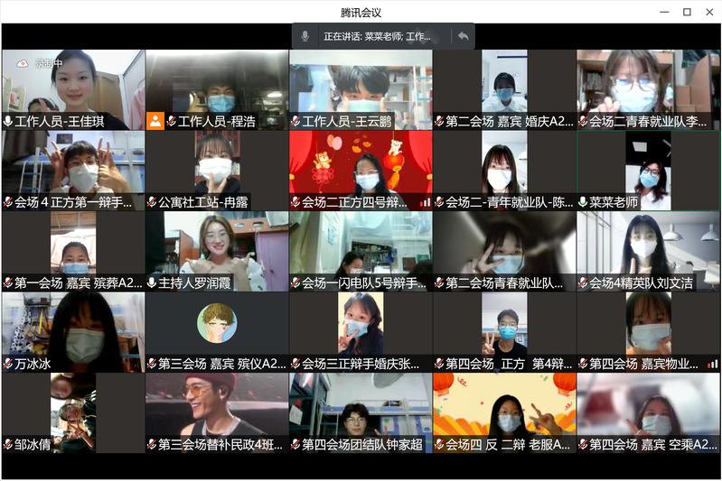 为引导我校学子积极践行社会主义核心价值观,在五四青年节之际,4月28日-29日,由学生处、民政与社会治理学院党总支主办,社工专业党支部、四叶草社工站、学生公寓社工站联合承办的“明辨青春”辩论赛在腾讯会议圆满举行,参与人次累计260人。民政与社会治理学院党总支书记陶军屹,通识教育学院专职组织员邓春梅,人文素质教育教研室主任、文化学学科带头人冯雪燕教授,语文教研室主任陈广根教授以及民政与社会治理学院婚庆专业教研室主任,婚庆专业带头人贾丽彬副教授等教师代表参加。