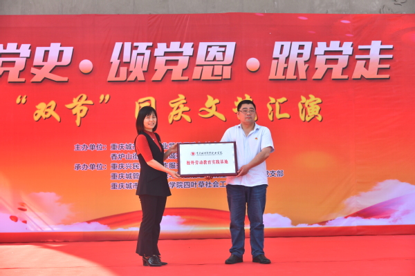 据悉,在汇演伊始,陶军屹书记还代表学院向康居西城第三社区党支部进行了劳动社会实践基地授牌。她指出,劳动教育是新时代党对教育的新要求,是中国特色社会主义教育制度的重要内容,是全面发展教育体系的重要组成部分。学院将以此次共建劳动社会实践基地为契机,大力弘扬劳模精神、劳动精神、工匠精神,切实发挥高校智力资源优势,以党建引领师生深入社区开展党史学习教育、便民惠民服务、社区治理等新时代文明实践志愿服务活动,为群众办实事、办好事、解难事,为社区和谐发展、居民美好生活送上一份光、一份热、一份情,以昂扬姿态奋力开启全面建设社会主义现代化国家新征程,以优异成绩迎接建党100周年。