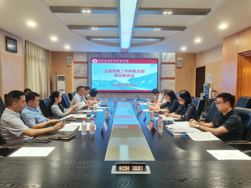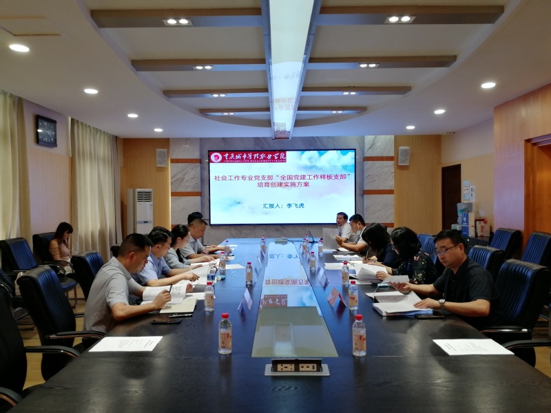 为深入学习贯彻习近平新时代中国特色社会主义思想,进一步加强全国党建工作样板支部培育创建工作,推动新时代学校党建示范创建和质量创优,6月15日,民政与社会治理学院党总支社会工作专业党支部召开“全国党建工作样板支部”建设工作推进会。重庆师范大学经济管理学院党委书记钟敏、重庆电子工程职业学院组织部部长 刘洪光、重庆轻工职业学院党委书记张光春、重庆同创思达教育科技有限公司总经理梁晓春以及我校党委组织部部长付海涛、党委统战部部长张睿到会指导。会议由民政与社会治理学院党总支书记陶军屹主持。